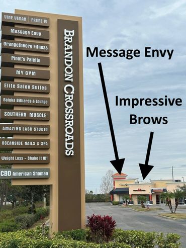 Directions: Our new location is in the Brandon Crossroads plaza at the end of the Selman Expressway in in suite 2090 next to Massage Envy in the old Amazing Lash location. Note: The outside sign still says Amazing Lash until we get it changed.