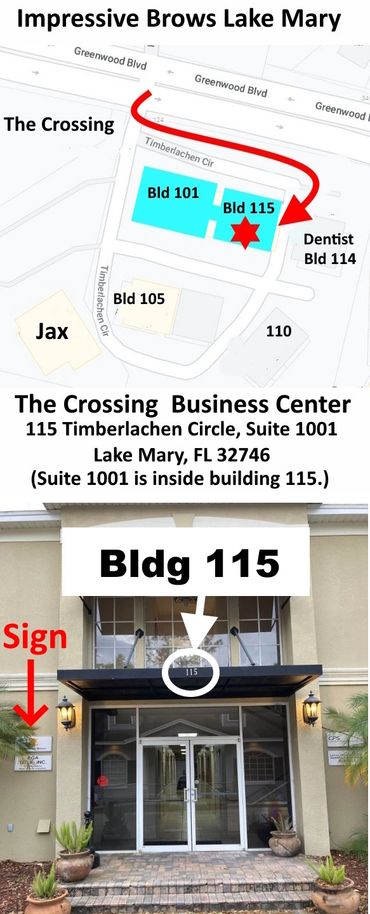 Directions: From Greenwood Blvd, turn onto Timberlachen Circle. (Jax 5th Ave restaurant on the right.) Take the first left and go toward the back of the plaza to the end of bldg 115. The double glass door entrance is at the end of the building and has 115 above it. (Across from Lake Mary Dental in bldg 114.)